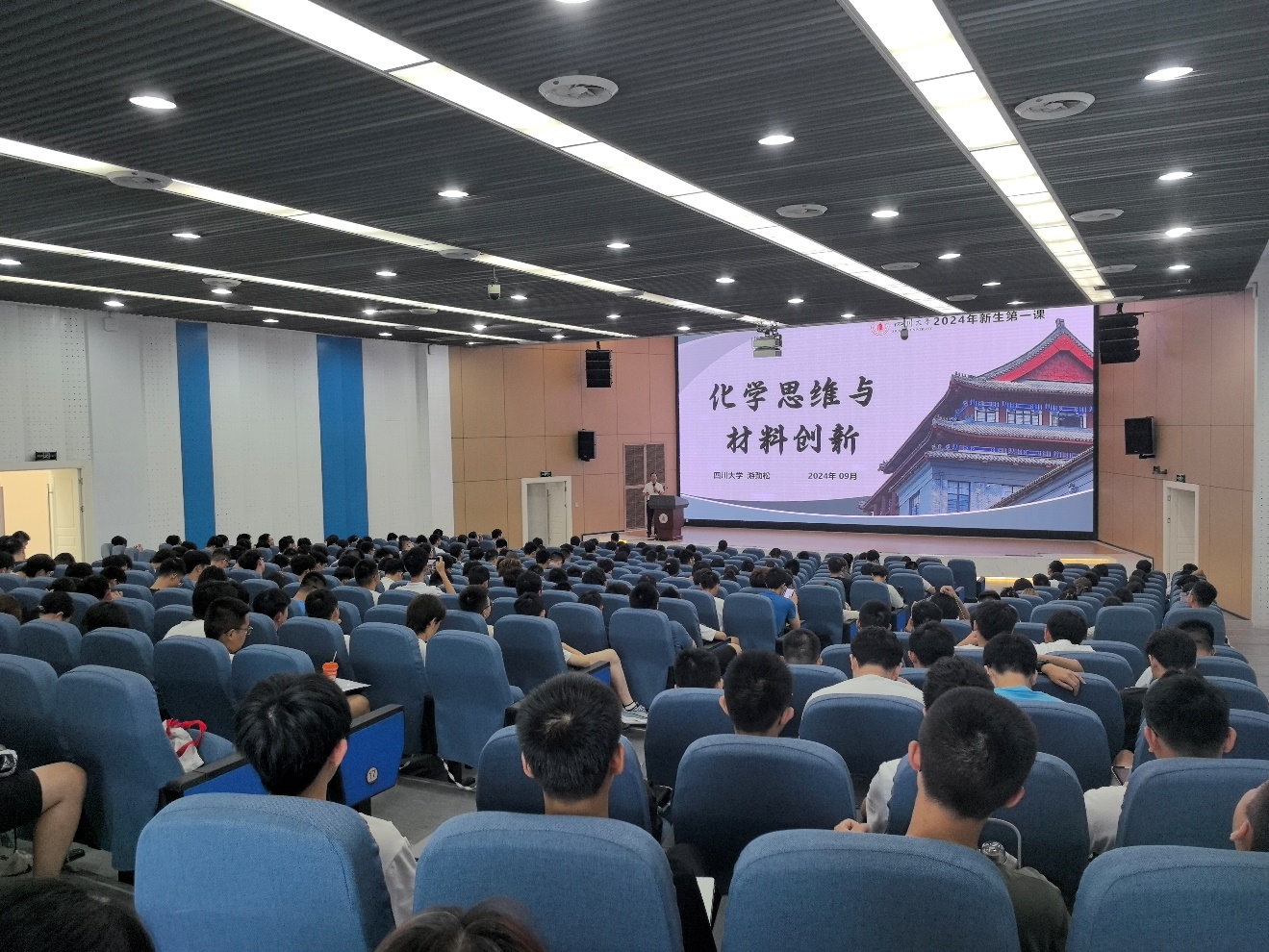 2024年9月10日,四川大学副校长、黄金城官方网站教授游劲松在江安校区水上报告厅为黄金城官方网站2024级本科新生带来入学讲座——化学思维与材料创新。本次讲座旨在帮助新生更好的了解化学学科,并介绍化学在现代社会发展中的重要作用。黄金城官方网站党委副书记肖波、辅导员侯鹏飞以及24级全体本科新生参加了此次讲座。